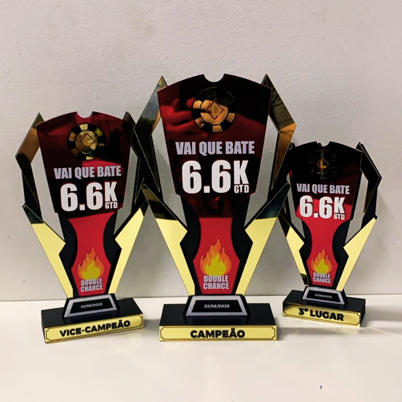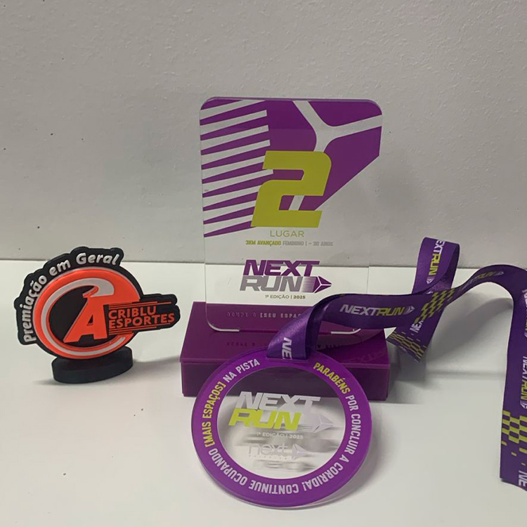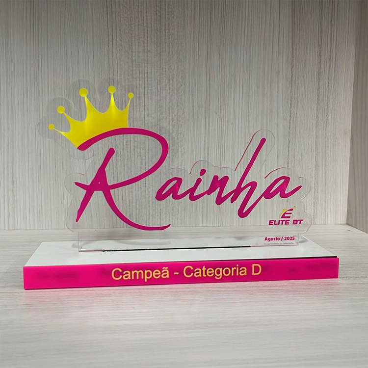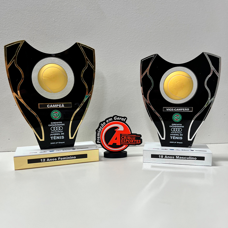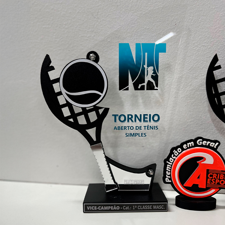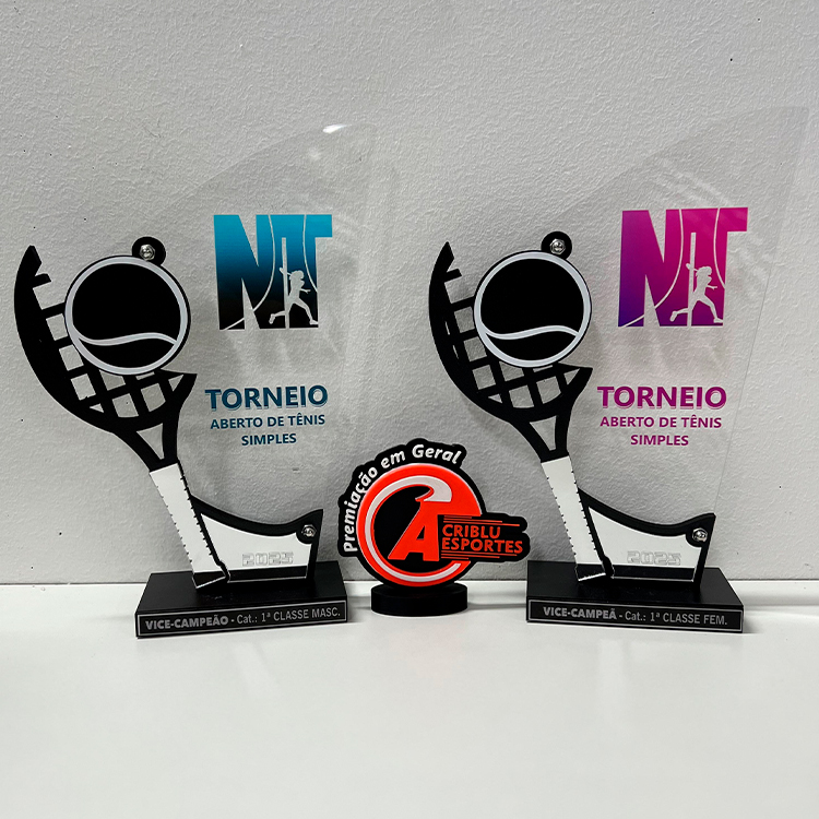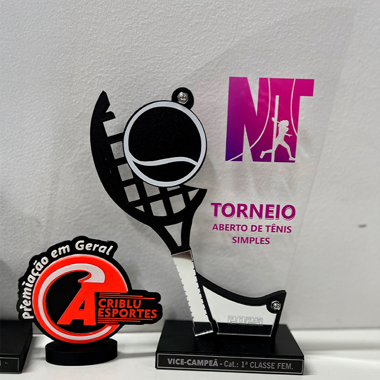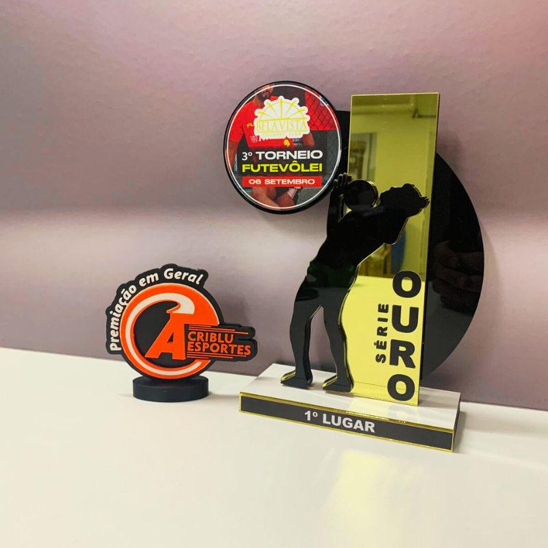 Troféus em acrílico, metal ou MDF com acrílico. Perfeitos para celebrar conquistas.
